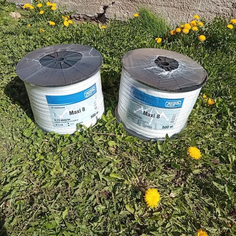Foga Starline elrep för elstängsel. Längd 300 meter i vit/svart färg. Oöppnad förpackning, säljes då jag inte har hästarna kvar. Nypris 589 hos Hylte lantmän.