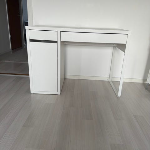 Säljer ett "Mikael" hörnskrivbord / databord från IKEA, komplett med bruksanvisning och alla tillbehör. Bordet är i bra skick förutom att faneren har krakulerat på ett hyllplan där det har stått en varm router. Dock inget som syns så tydligt. (Se bild)
