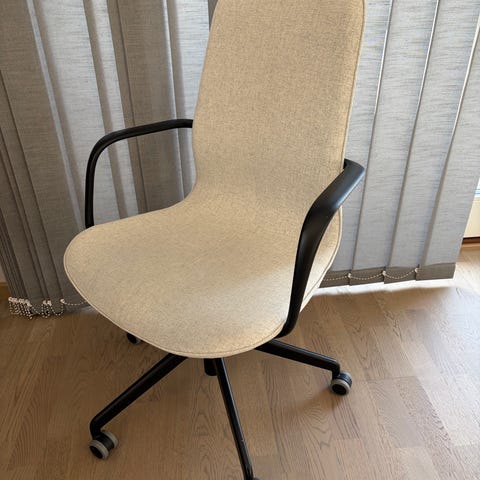 Nu säljs en skrivbordsstol Örfjäll i ny skick. Vit/grå tyg. Säljs på Ikea fortfarande.