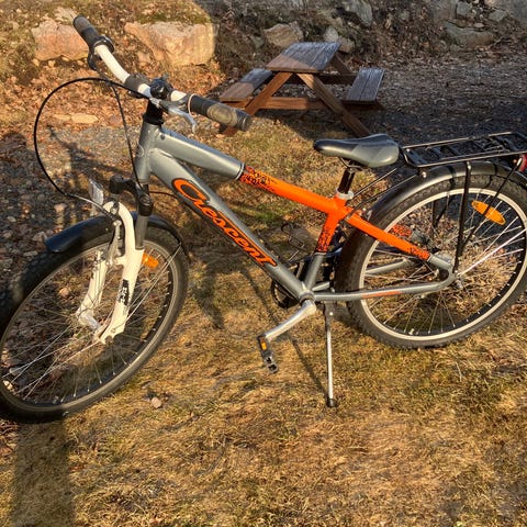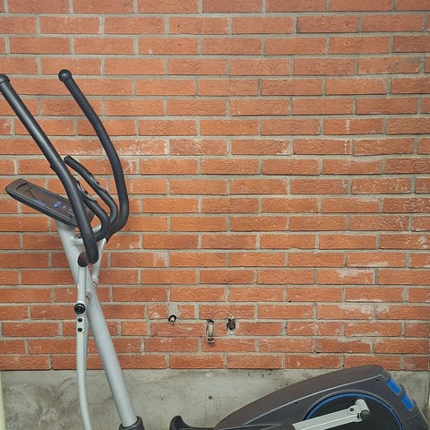 Träningscykel i bra skick med digital display och möjlighet att ställa in olika banor/intervaller. Pulsmätare i handtagen som visas på displayen.