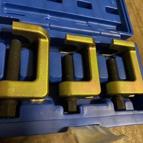 OMT bearing separator and puller set. Se bild där ena avdragare är lite sned/skadad. Alla andra tillbehör är oanvända.