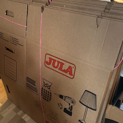 Bra skick. Använts vid 2 flyttar. Text skriven på lådorna för tidigare innehåll.