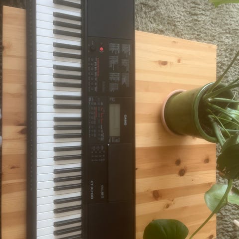 Yamaha Portatone PSR-175 digitalpiano med 61 tangenter i svart utförande. Instrumentet är ett portabelt keyboard med inbyggda högtalare och olika funktionsknappar och ljudinställningar på ovansidan. Tangentbordet står på ett X-stativ och kompletteras med en enkel pianopall i svart konstläder. Passar för hemmabruk, övning och enklare musikspel i olika miljöer.