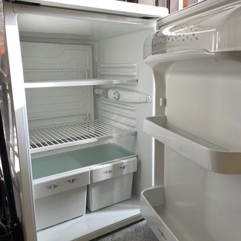 Zanussi kylskåp i fristående modell. Skåpet har en vit front med dörr som öppnas åt sidan. Invändigt finns flera hyllplan i metall för förvaring av mat och dryck. Temperaturreglage och strömbrytare sitter upptill på insidan. Passar för användning i kök, förråd eller som extra kyl i exempelvis gäststuga eller hobbyrum.