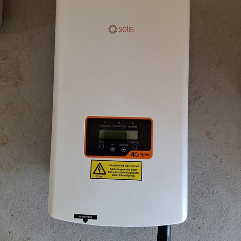 Växelriktare inklusive wifi-dongel och smartmeter. Förberedd för batteri. Har varit monterad inomhus i garage. Säljes då jag bytt system till batteri med inbyggd växelriktare.