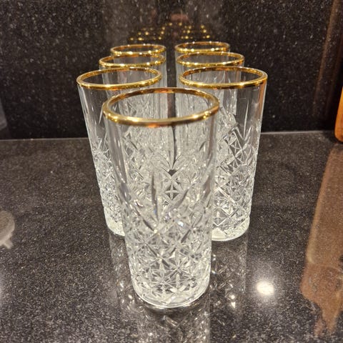 Paşabahçe Golden Touch Amber glas med volym 37 cl. Set om 6 stycken dricksglas i transparent glas med guldfärgad kant upptill. Glasen är utan stjälk och har rundad form, lämpliga för exempelvis vatten, läsk eller drinkar. Levereras i originalförpackning med individuella fack för varje glas.