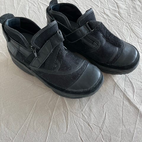 Ortopedisk sko i svart färg. Modellen är en stabil stödsko för fot och underben, med hårt ytterskal och mjuk vadderad insida. Skon har flera justerbara kardborreband över fot och skaft för att kunna anpassas efter ben och fot. Sulan är utformad för att ge stöd vid gång. Lämplig som avlastande och stabiliserande ortos efter skada eller operation av fot eller fotled, enligt ordination från vårdgivare. Storlek ca 35-39
