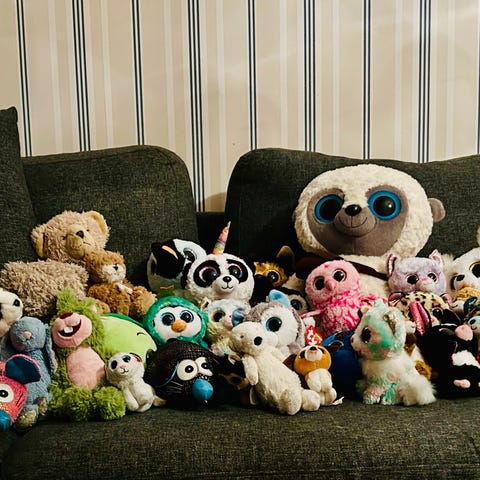 Ty figurer. De stora har endast stått som prydnad i bokhylla. Likaså kaninen. De små är använda och kan fås på köpet.