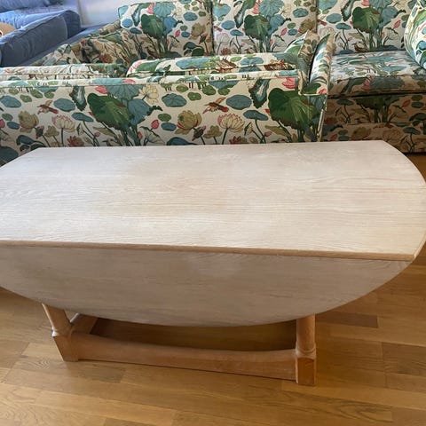 Klaffbord, massiv oljad ek. L:140 B:98/54 H:53 cm.
