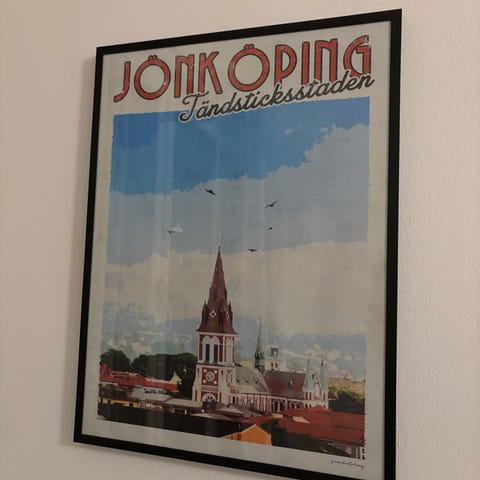 Tavla med tryck över Åre. Mycket gott skick. 31x41cm.
