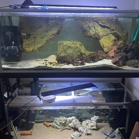 Jag måste tyvärr bli av med min akvarium pga platsbrist. Det ligger på 200l. Ca 1-1.5 år gammalt. Det finns massa invånare och växter som får följa med vid intresse.
