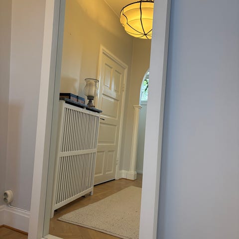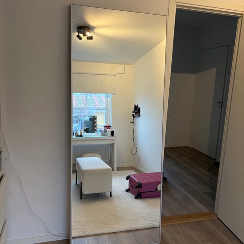 IKEA spegel helkropp rektangulär väggspegel i glas med smal ram. Passar bra i hall, sovrum eller vardagsrum för helkroppsspegling och som inredningsdetalj.