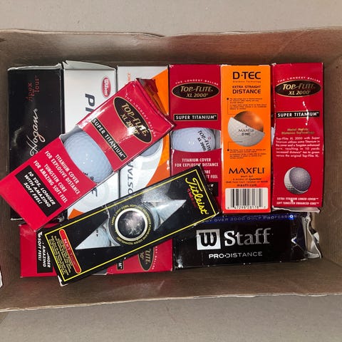 145st Blandade märken golfbollar i flerpack. På bilden syns bland annat golfbollar från Titleist, TaylorMade och andra fabrikat i olika modeller och färger. Förpackningarna innehåller nya eller oanvända bollar avsedda för spel på golfbana. Passar för golfspelare som vill ha ett urval av olika typer av golfbollar för träning eller spel.