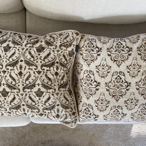 Linnegardiner i beige från Åhléns, 1 par (2 längder). 140x250 cm. Hämtas i Vasastan