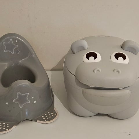 BabyBjörn Pottstol grön och BabyBjörn Toalettsits vitt, bra skick. De säljs helst tillsammans, men det går att köpa dem separat (50 SEK/st).