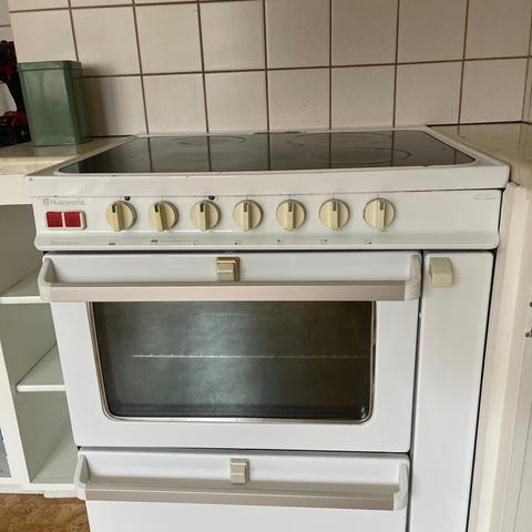 Äldre men fullt fungerande spis, från Husqvarna. Bredd 70cm, höjd 85cm.