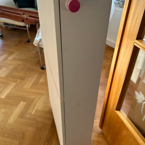 Så antingen använder man skrivbordet som det är med dess skönhetsfläckar, eller fixar man till det med lite lim, spackel och färg på bordsskivan. I övrigt funkar skrivbordet utmärkt!