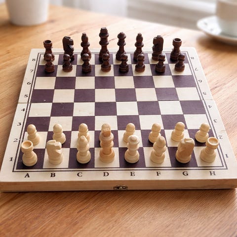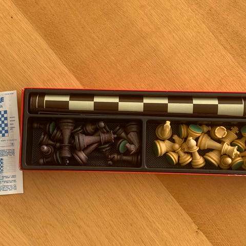 Schackspel trä hopfällbart bräde och pjäser