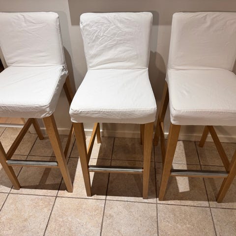 Säljer 3st höj och sänkbara barstolar, inkl fårskinns dynorna på bild.
