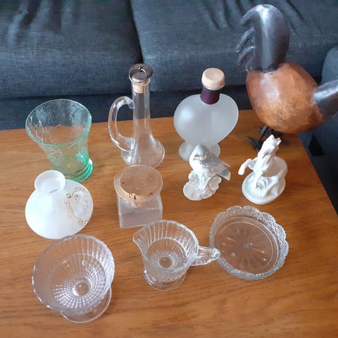 Stor uggla i glaserad keramik, cirka 45cm hög och 30cm i diameter. Vet inte ursprung. Väldigt dekorativ, säljs pga platsbrist.
