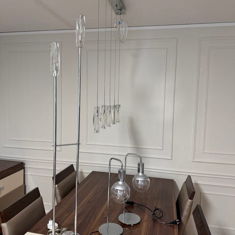 Lamporna är sparsamt använda och i mycket fint skick. Plastskyddet sitter fortfarande kvar på foten till golvlampan.