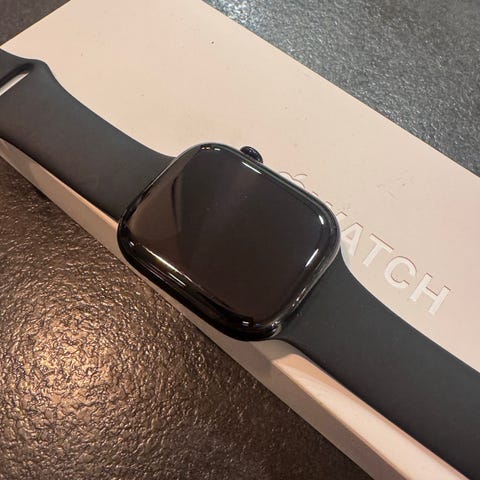 Apple Watch smartklocka med svart armband. Klockan levereras i originalförpackning med urtavla och matchande svart klockarmband i sportmodell. Passar för vardagsanvändning med funktioner för tidtagning, notiser och aktivitetsmätning beroende på modell och programvara. Armbandet har flera justerbara hål för att passa olika handleder.