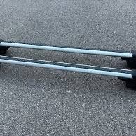 Takräcke i svart utförande. Består av två tvärstag med fästen för montering på bilens tak. Passar som bas för montering av till exempel takbox, cykelhållare eller annan last på taket. Materialet är metall med plastdetaljer i fästena. Exakta mått och bilmodellskompatibilitet är inte angivna och behöver kontrolleras mot aktuell bil.