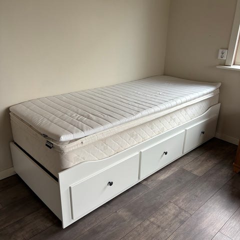 Extra säng har haft påslakan runt madrassen så den har varit skyddad.