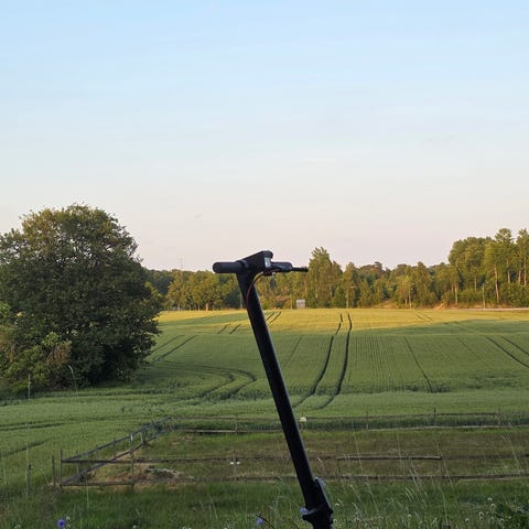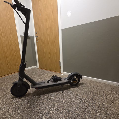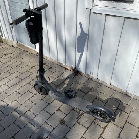 Elsparkcykel i svart färg med digital display på styret. Utrustad med fram- och bakhjul med fasta skärmar samt fotplatta i full längd. På styret finns gasreglage och broms. Bakdelen har reflex/bakljus. Passar som transportmedel för kortare sträckor i stadsmiljö eller till och från skola och arbete. Drivs av elmotor och inbyggt batteri som laddas via ladduttag på ramen.