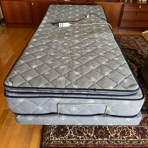 Bäddmadrass, madrass, ställbar sängram. Nya IKEA sängben (BRENNÅSEN, svartlaserade)