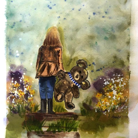 Tavla akvarell landskap fåglar