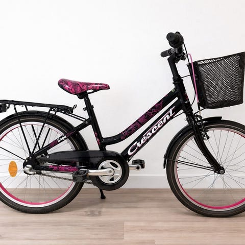 Nu har vår omtyckta barncykel blivit för liten och får gå vidare. Den är grön/vit av märket Cresent, jag tror modellen heter Saga. Den är välvårdad, i fint skick och har förvarats inomhus. Normala spår av användning som det blir på en barncykel.