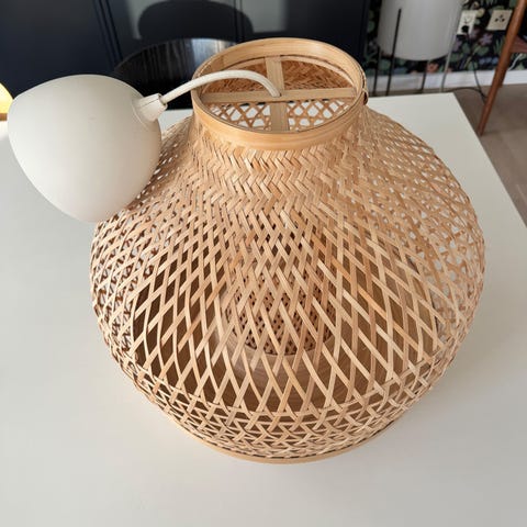 • Material: Vävd bambu/trä med synliga träremsor.