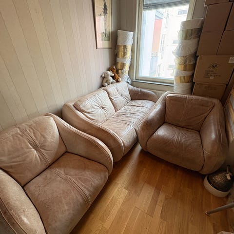 Fin lädersoffa bortskänkes