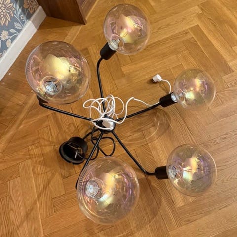 Fin taklampa med 6 klot som kan varieras i olika riktning.