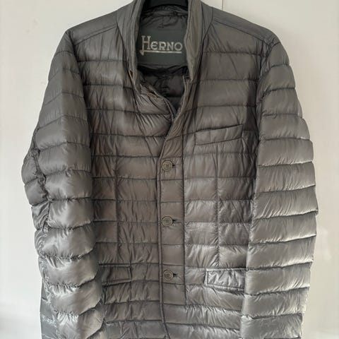 Marinblå trendig Herno dunjacka i storlek 50 säljes. En orolig tun dun jacka perfekt nu till våren. Grymt skick och inga hål! Nypris på 5000 så riktigt kap!