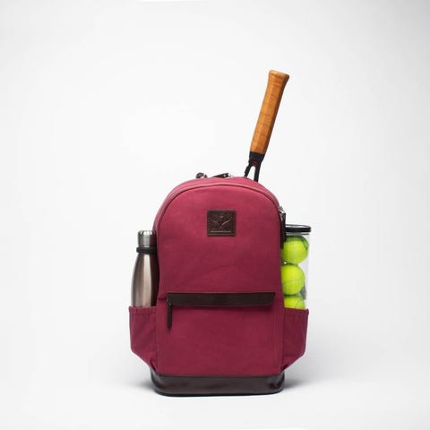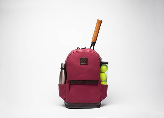 Elegant tennisracketväska gjord av vaxad, miljövänlig bomullscanvas och detaljer i vegetabiliskt garvat äkta läder.