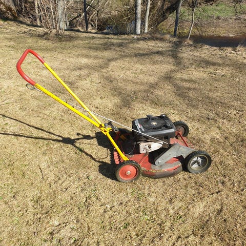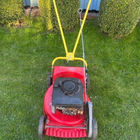 Klippo gräsklippare med drivning Brigg & Stratton 4 HP modell äldre med utkast från sidan som gör att du får bra spridning på gräsmattan och slipper dom tråkiga grästussarna som brukar ligga kvar efter klippningen. 53 cm klippbredd, slipade knivar, rengjord och tectylad inför varje vintervila.