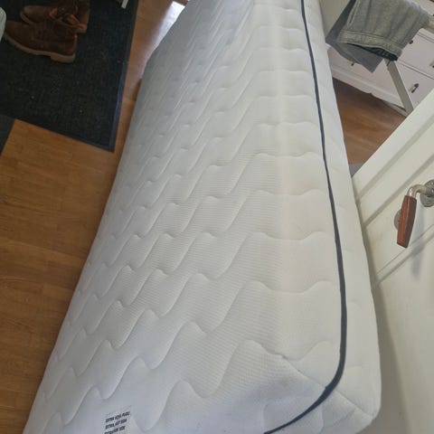 En fräsch Continentalsäng i fint skick av märket Jensen, inklusive bäddmadrass Tussöy (IKEA), också i fint skick, samt sänggavel från Mio (höjd 150 cm) säljes pga ommöblering. Sängen har stått i ett gästrum och är sparsamt använd. Färg: ljust gul och vit. Sängkappa ingår och har skyddat sängen så att den är ren och snygg. Hämtas i Lund.