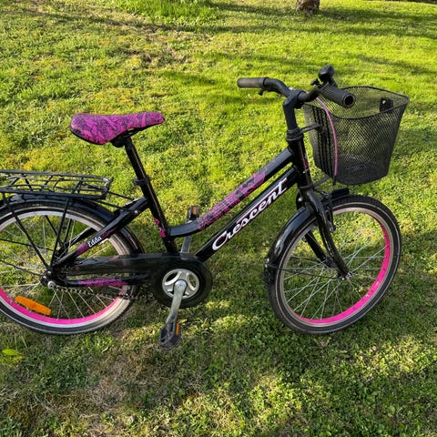 Crescent barncykel med 24 tums hjul. 3 växlad, lysen fram & bak, reflexer och ringklocka. Svart och rosa färg. Cykeln passar barn i längd ca 130-150cm. Jätte fint skick. Förvarade inomhus! Pris 3300kr