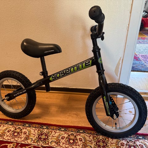 Kayoba balanscykel med 12" hjul i svart färg. Cykeln har låg ram som underlättar på- och avstigning för barn. Utrustad med luftfyllda däck och reflexer i hjulen. Sadel och styre är justerbara i höjd för att kunna anpassas efter barnets längd. Avsedd för mindre barn som ska träna balans och koordination innan övergång till trampcykel.