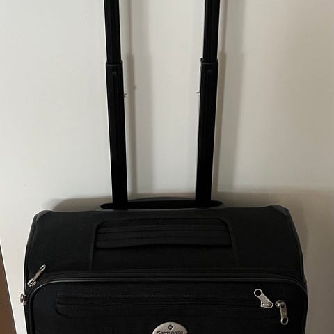 Dragväska med handtag på två hjul.