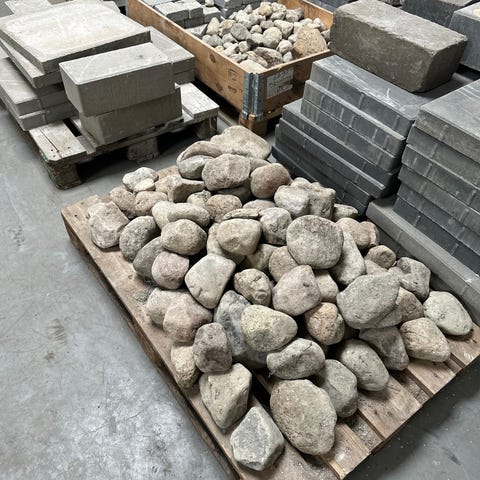 Ca 40 st Natursten gatsten i grå nyans. Stenarna är ojämnt formade och lämpar sig för exempelvis markbeläggning, gångar eller dekor i trädgård och uppfart. Hämtas i Oxie.