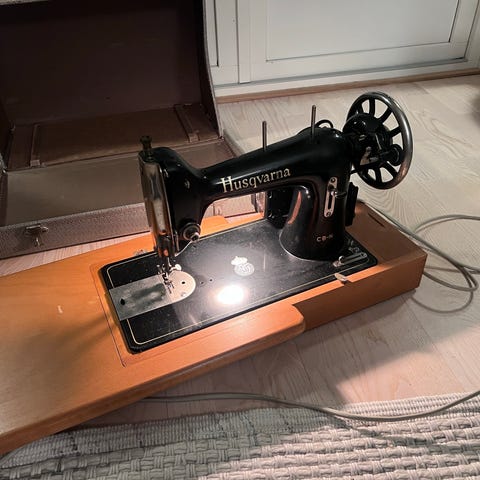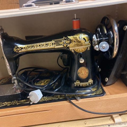Singer symaskin med träbord och trampställning