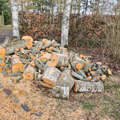 Kapad björkved 25-30cm färdigt att klyva 2-3m3