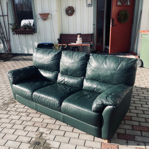 Har även grön skinnsoffa till salu.
