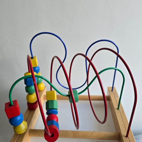 Ikeas klassiska kullabyrint - ett måste i alla hem med småbarn. Barnet över på motorik, färger, problemlösning. Leksaken är även positiv för barnets synutvecklingen med alla kulor i olika färger och banor.