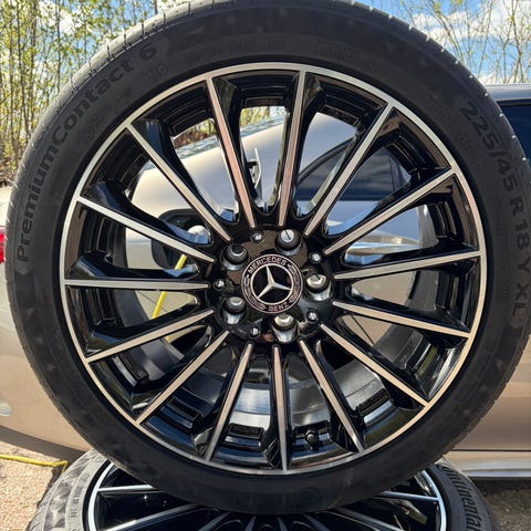 Dock saknas centalkåpan med MB emblem för fälgarna.