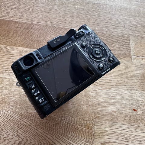Fujifilm X-E5 digitalkamera i svart utförande.