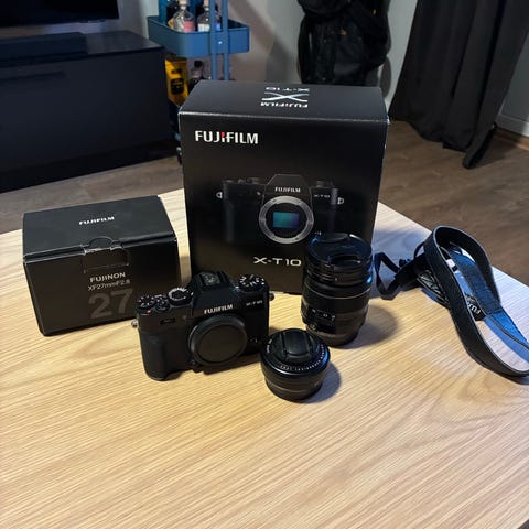 Spegellös digital systemkamera med avtagbart objektiv, visad med extra objektiv på bilderna. Kameran har manuella reglage för slutartid och exponeringskompensation samt vinklingsbar skärm på baksidan. Passar för allmän fotografering, resor och vardagsbilder. Kommer med originalkartong enligt bild.
